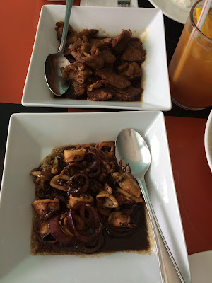 Sadly, the adobong pusit I had today met none of my expectations...there was no squid ink, it was cooked rather quickly so the squid was a bit rubbery and in general, it was just a bit sad. Oh well. My friend's dish was good (I had a bite, it was ok), and the garlic fried rice was passable. I hope some of the other items on the menu are better because I intend to order some for delivery before I leave in a week or so.